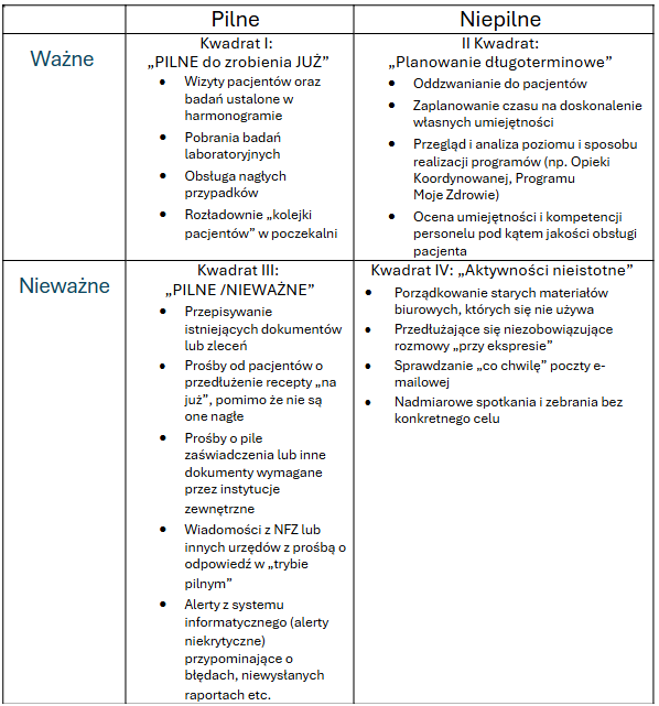Matryca Coveya – znana jako matryca zarządzania czasem (TMMT)